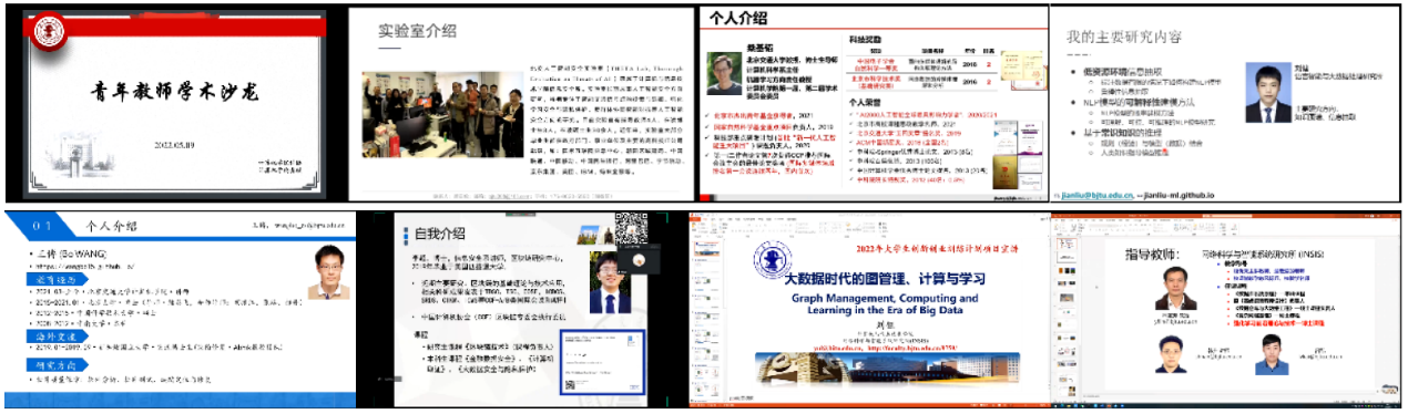 除了指导教师团队介绍外,在5月9日的“青年教师学术沙龙”活动中,7位青年教师代表为同学们带来精彩的学术报告,深入浅出地为员工们讲解了自然语言处理、软件质量保障、大数据的图管理与计算、人工智能安全等当前热门研究方向,并根据自身研究设计多个适合本科生的大创题目。