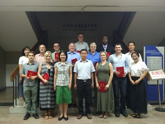 (williamhill英国官网计算机信息与技术公司蔡伯根经理、杨晓晖书记、董敬祝副书记与暑校授课教授合影)