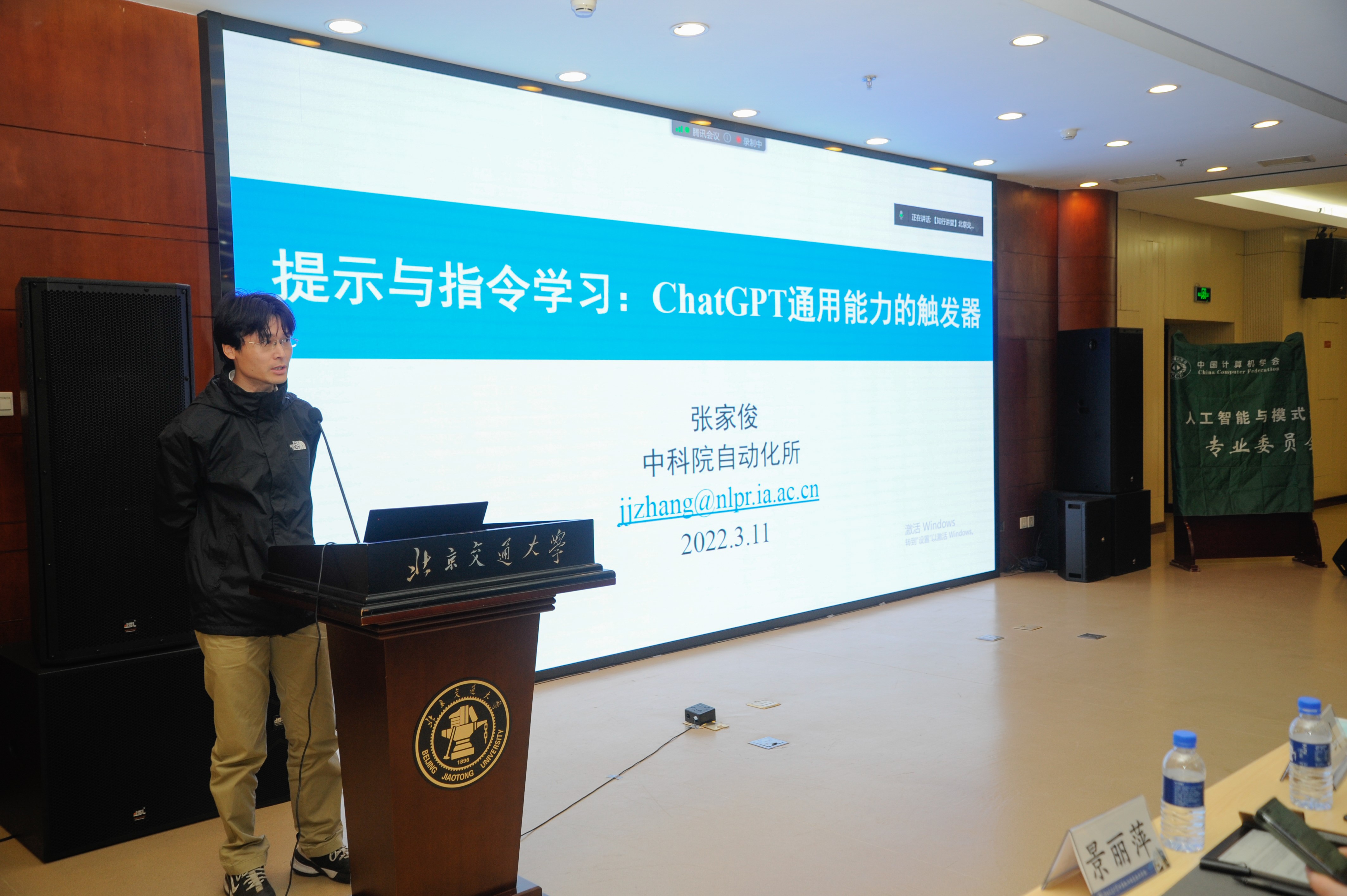 张家俊研究员做《提示与指令学习:ChatGPT通用能力的触发器》报告