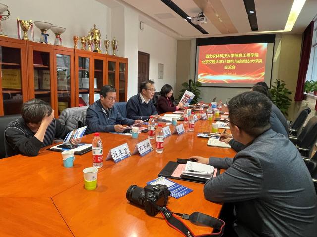 2023年3月23日下午,西北农林科技大学信息工程公司党委书记党青、经理兼党委副书记张宏鸣等一行四人来william威廉中文官网调研,与william威廉中文官网经理蔡伯根、党委书记贾卓生等教师进行交流。