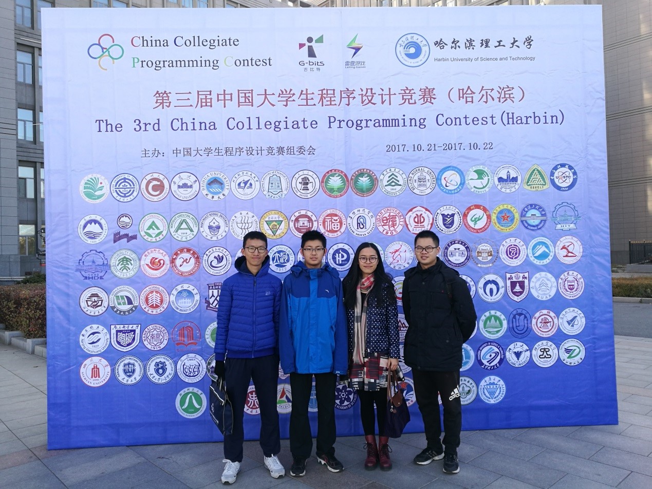 CCPC哈尔滨参赛队伍(胡祖俊、赵思达、许华婷-教练、陈炳君)