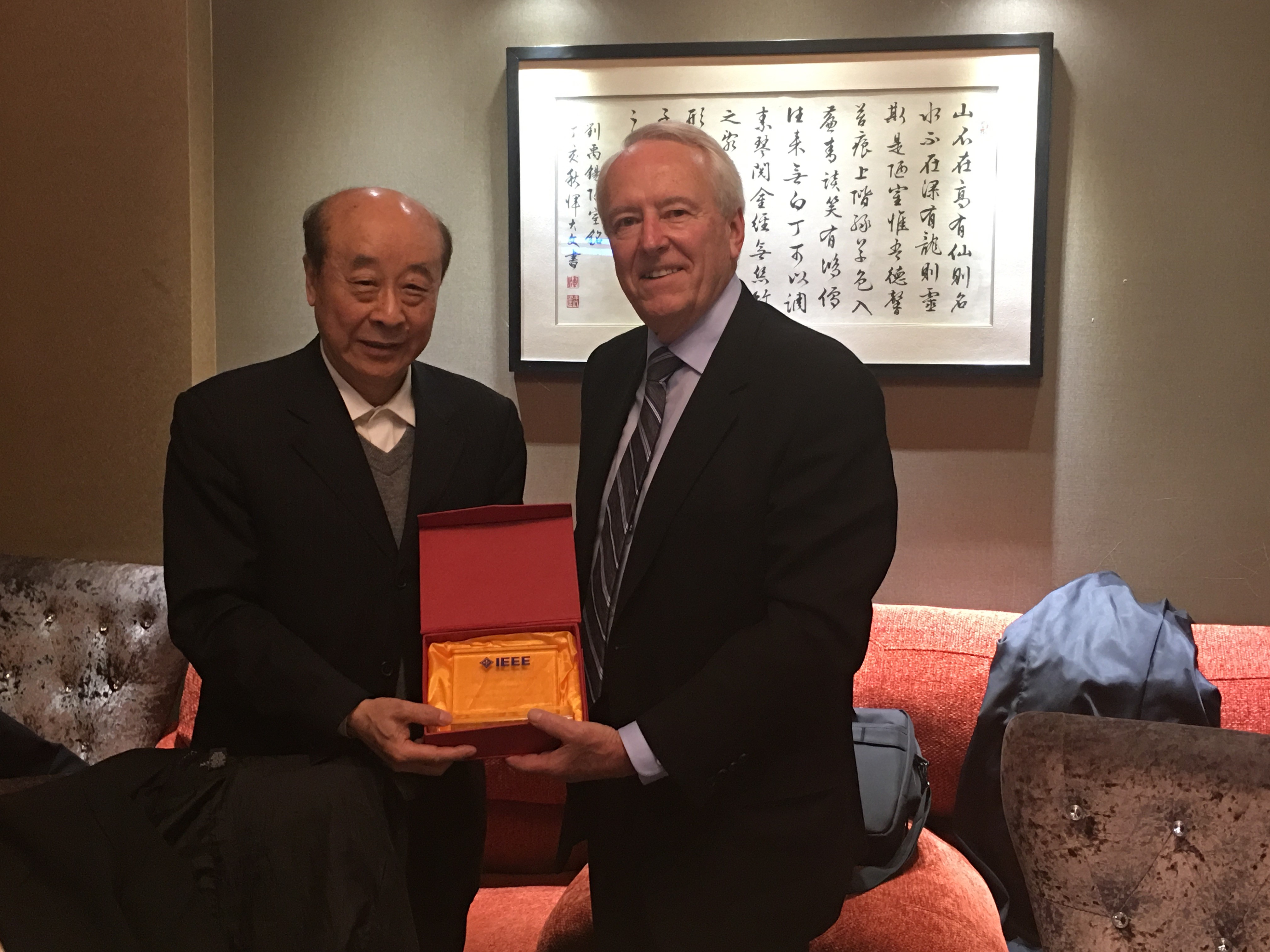 陪同访问的还有IEEE亚太地区业务总监华宁先生。IEEE Beijing Section主席阮秋琦教授向Jim Jefferies等人介绍了北京分会的发展现状,IEEE Beijing Section 副主席、IEEE Beijing Section 的创始人之一,周梦奇老师全面介绍了IEEE北京分会的发展进程。Jim Jefferies先生对IEEE北京分会的贡献给予了赞赏。双方就IEEE北京分会的未来发展进行了讨论、交流了意见,就电气电子工程领域的热点问题开展了探讨。