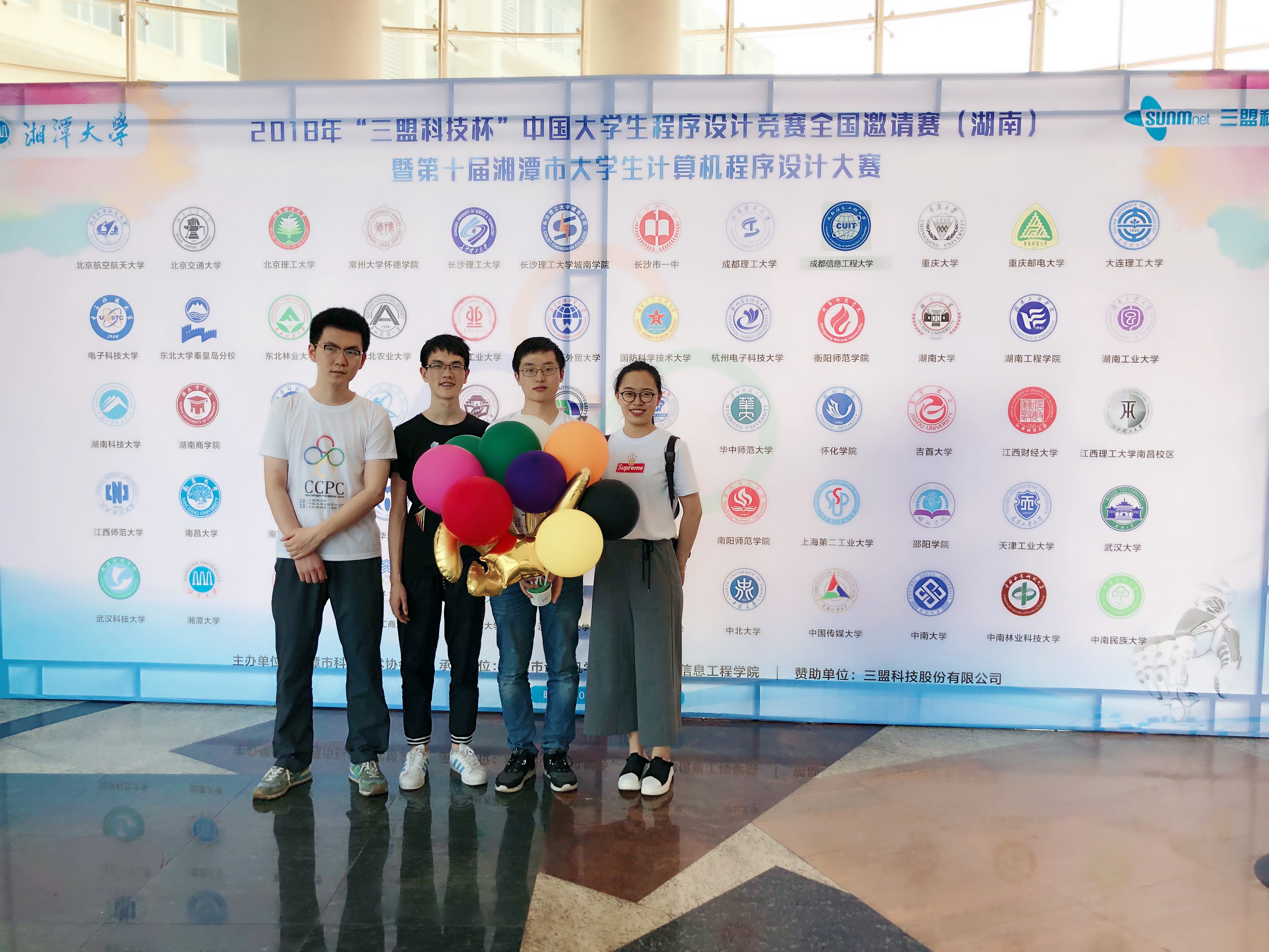 2018年第4届CCPC(中国老员工程序设计竞赛)全国邀请赛湘潭赛站于2018年5月12日-13日在湘潭大学举行。公司派出参赛队伍——“猜歌群”队(何卫锋、郑黎明、王天舒)赴现场参赛。来自全国60所高校的177支队伍展开激烈角逐。在本赛站的开幕式上,公司ACM教练许华婷应邀代表参赛教练发言。湘潭市科学技术协会党组书记、主席涂敬阳,湘潭市人民政府秘书长刘定良,湘潭市科学技术协会副主席蒋长湘,湘潭市计算机学会理事长刘任任,湘潭大学副董事长刘建平,湘潭大学科协秘书长许斌等出席闭幕式。