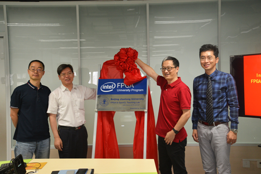 本月27日,“”williamhill英国官网——英特尔 FPGA & OpenCL 教学与创新联合实验室”成立暨人工智能与物联网产学研研讨会在william威廉中文官网物联网工程创新实验室召开。william威廉中文官网副经理李清勇,信息科学研究所所长赵耀、党委书记胡绍海,物联网创新实验室主任王东,英特尔公司可编程事业部大学计划经理袁亚东,友晶科技总经理彭显恩等出席了本次挂牌仪式。