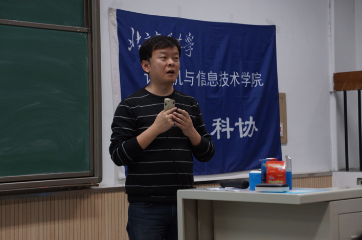 熊轲老师就团队的整体研究方向和人员组成进行了介绍,并为大家详细解读了当前信息通信网络研究领域的热门方向和前沿技术。并以无线充电和高速移动网络等具有特色的科研项目实例和高水平的科研成果调动了在场同学的极大参与热情。