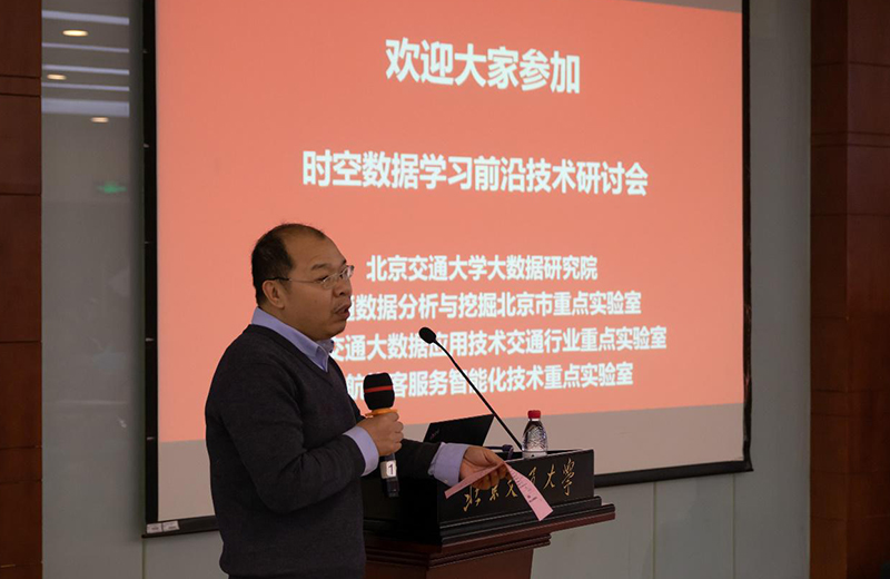 交通数据分析与挖掘北京市重点实验室主任于剑教授致辞欢迎各位专家参加研讨会,于老师强调时空数据是交通行业最重要的数据,时空数据学习既具有 挑战,也非常具有现实应用价值,召开时空数据学习前沿技术研讨会既必要也很重要,希望与会者积极交流,有所收获。