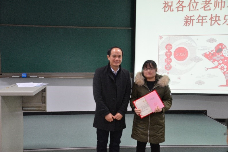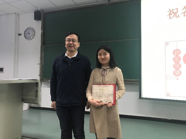 图4. 胡绍海教授为赵利军颁奖,导师白慧慧教授代替领奖