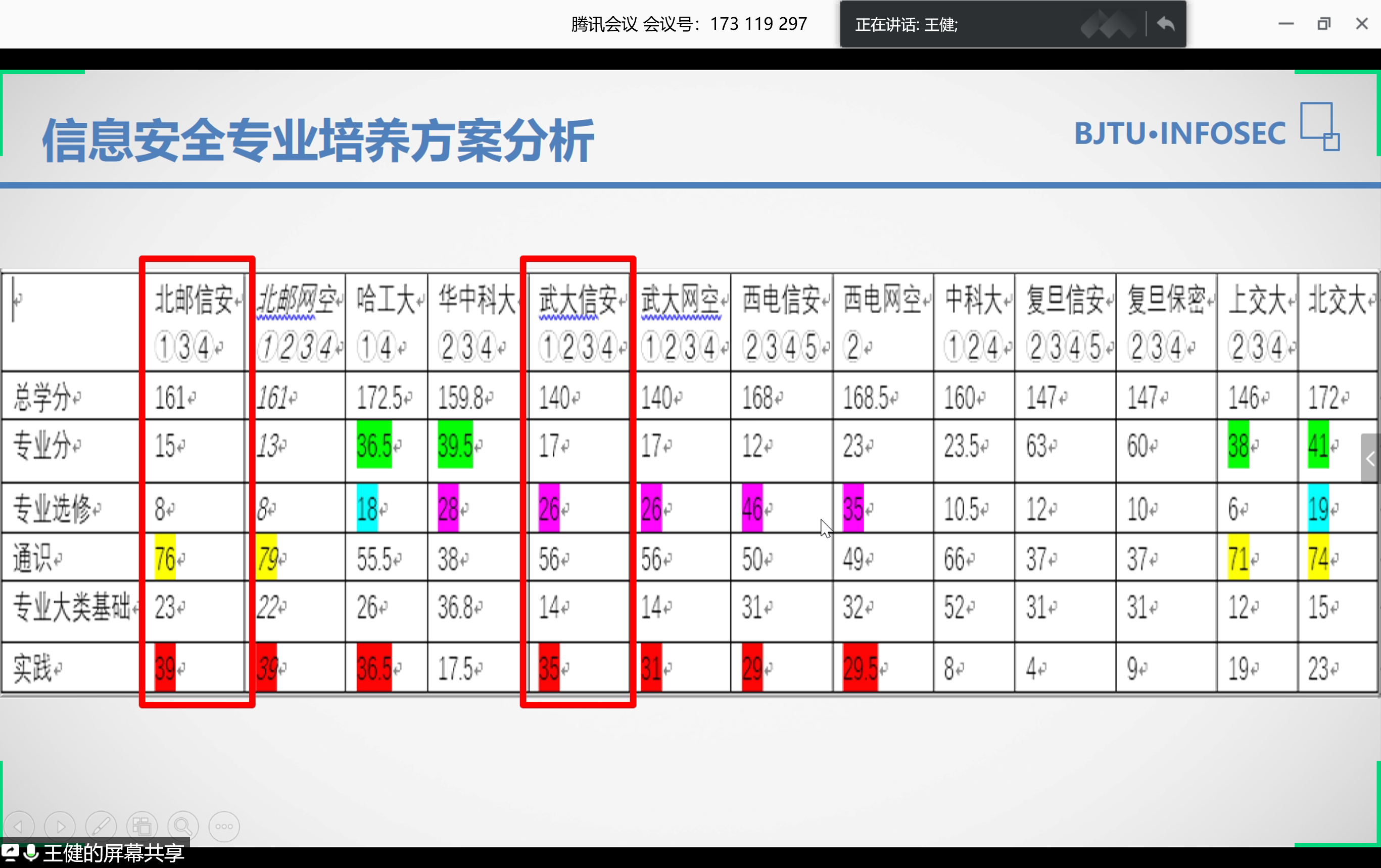 首先,计算机科学与技术、人工智能、物联网工程、计算机科学与技术(铁路信息技术)、信息安全、保密技术六个本科专业(专业方向)责任教授逐一汇报了2020版本科人才培养方案修订工作的进展情况。各专业责任教授带领专业教师广泛开展对卡内基梅隆大学、清华大学、浙江大学、南京大学、天津大学、北京理工大学等国内外高校相关专业的调研,通过问卷调查深入了解员工对2016版培养方案的意见和建议,明晰培养方案修订的总体思路,重构学科基础课、专业主干课、方向课和实践课的课程体系,目前2020版培养方案初稿已全部完成。与会人员还就本硕博一体化课程建设、保研机试、专业定位和特色、体系化课程设置等问题进行了深入探讨。