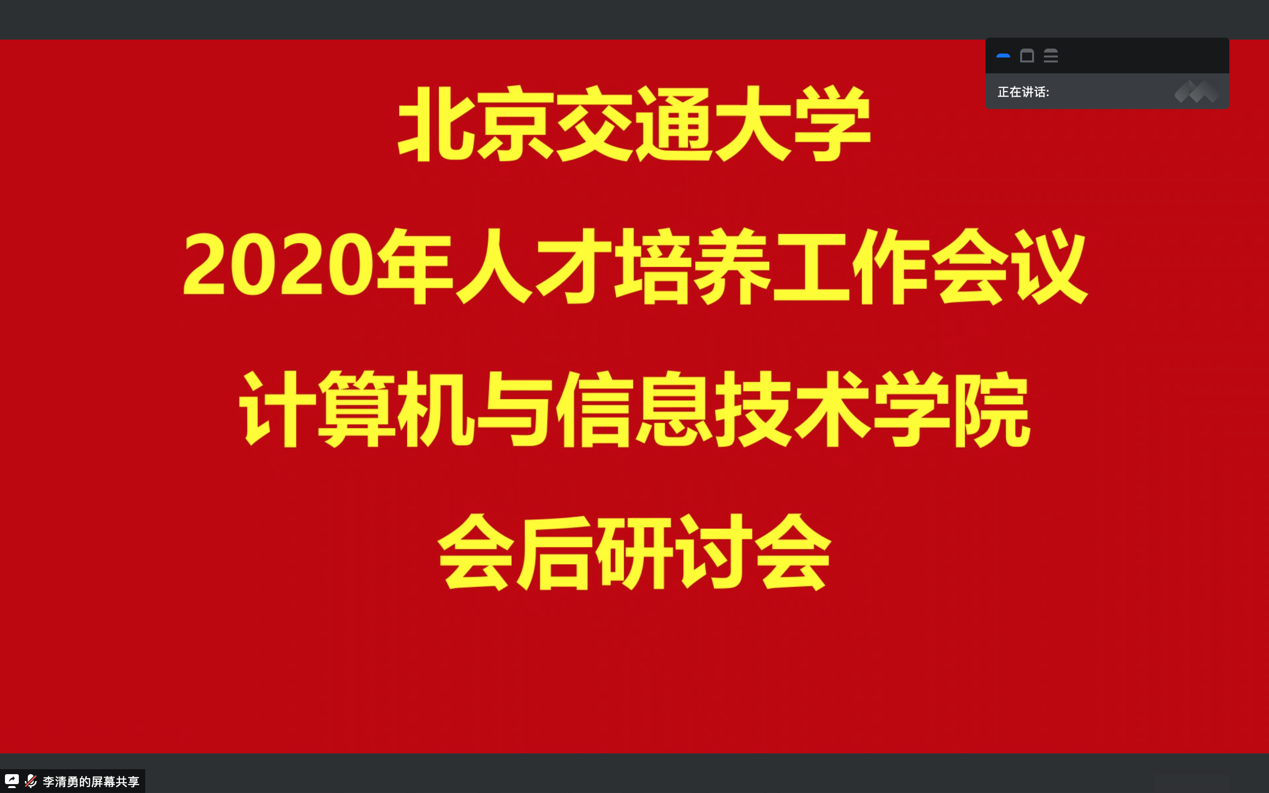 6月29日下午,计算机与信息技术公司以线上会议的方式召开了2020年人才培养工作研讨会。教务处副处长景云、研究生院常务副经理朱晓宁、招生与就业工作处处长刘东平、员工处处长王德瑜、研究生工作部部长刘燕、国际合作交流处处长夏明超、校团委副书记安志强、william威廉中文官网全体院领导、系所中心主任、本科生/研究生专业责任教授、教师代表、教学科、研究生服务中心及团委相关人员参加了此次会议。研讨会由公司经理蔡伯根主持。