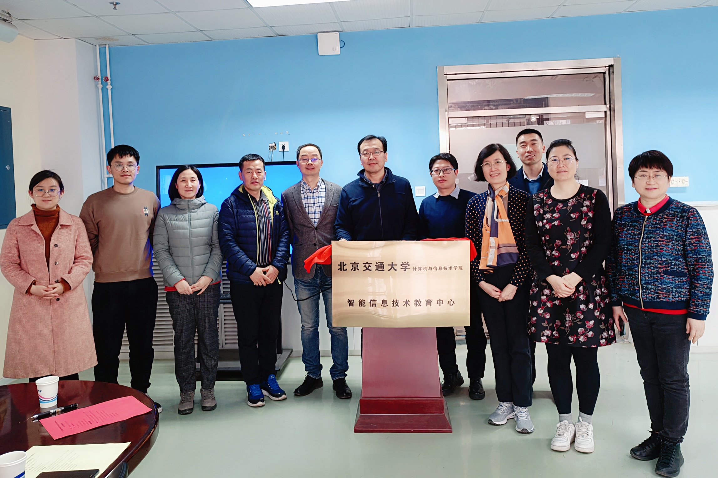 贾卓生宣布了公司成立“智能信息技术教育中心”和任命中心负责人的决定,并与中心主任李清勇一起,共同为中心揭牌。