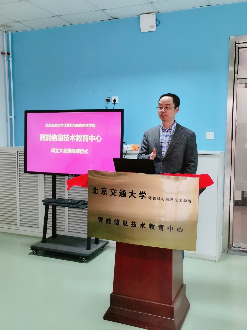 熊轲向智能信息技术教育中心的成立表示热烈祝贺,并在致辞中对中心资深教师在本科生教学工作中的贡献表达了赞扬与感谢,对中心的新气象新风貌表示了肯定和信心,并对中心未来的发展给予了关心和支持。