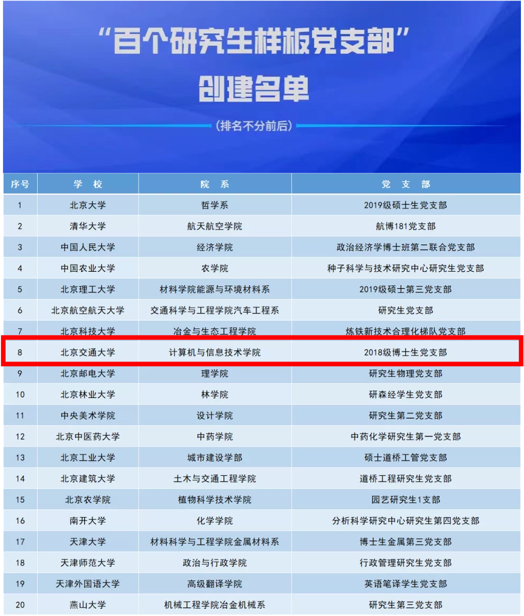 8月12日,教育部办公厅发布《关于公布第二批全国高校“百个研究生样板党支部”和“百名研究生党员标兵”创建(简称研究生党建“双创”工作)名单的通知》,公司2018级博士生党支部入选全国高校“百个研究生样板党支部”。