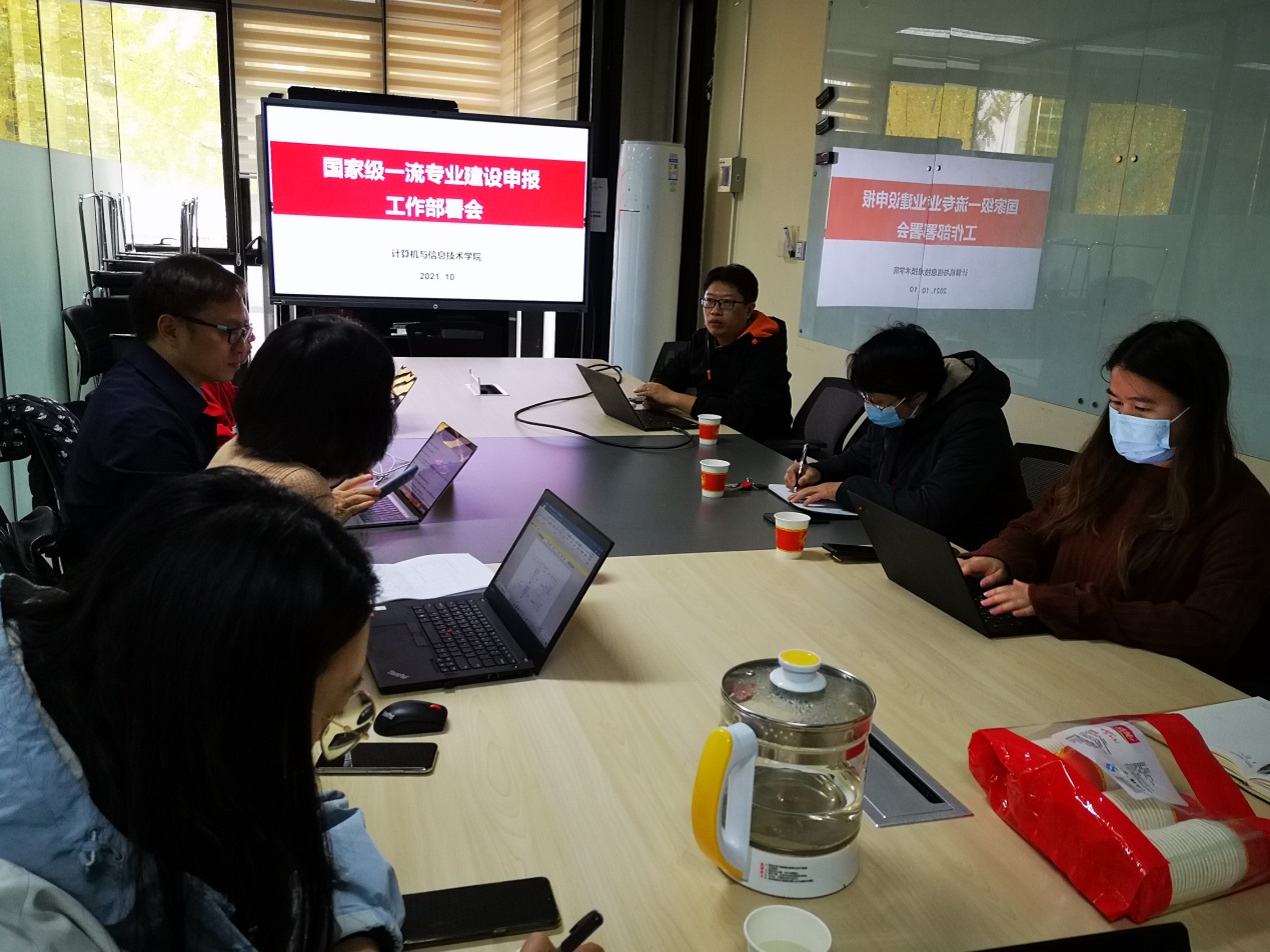 2021年10月29日下午,william威廉中文官网在逸夫楼西101会议室召开人工智能、保密技术专业申报国家级一流本科专业建设点研讨会,副经理熊轲教授、人工智能专业责任教授周雪忠、保密技术专业责任教授王健以及两个专业相关老师参加研讨会。会议由熊轲主持。