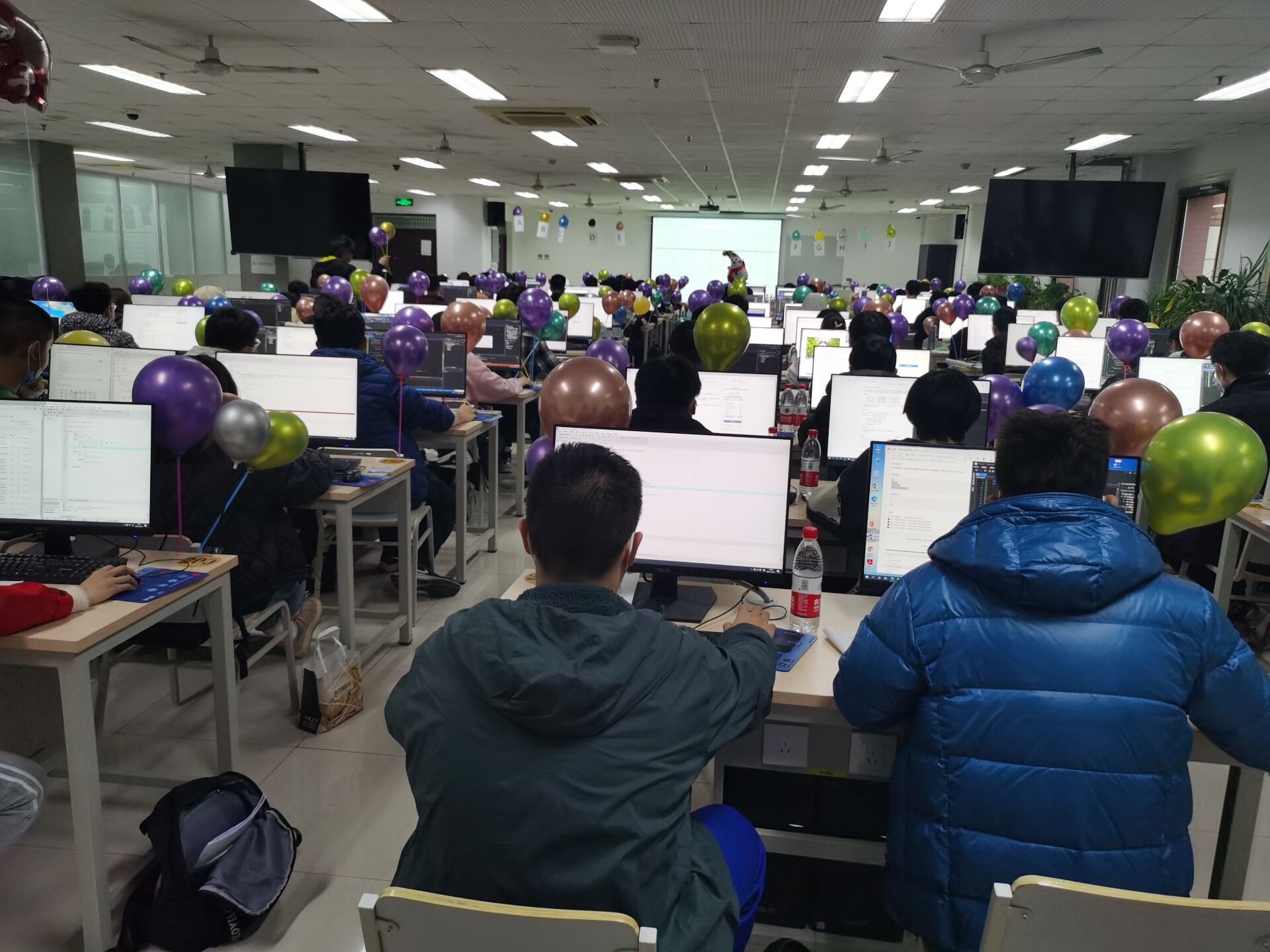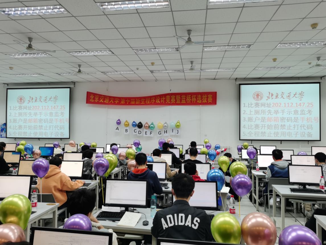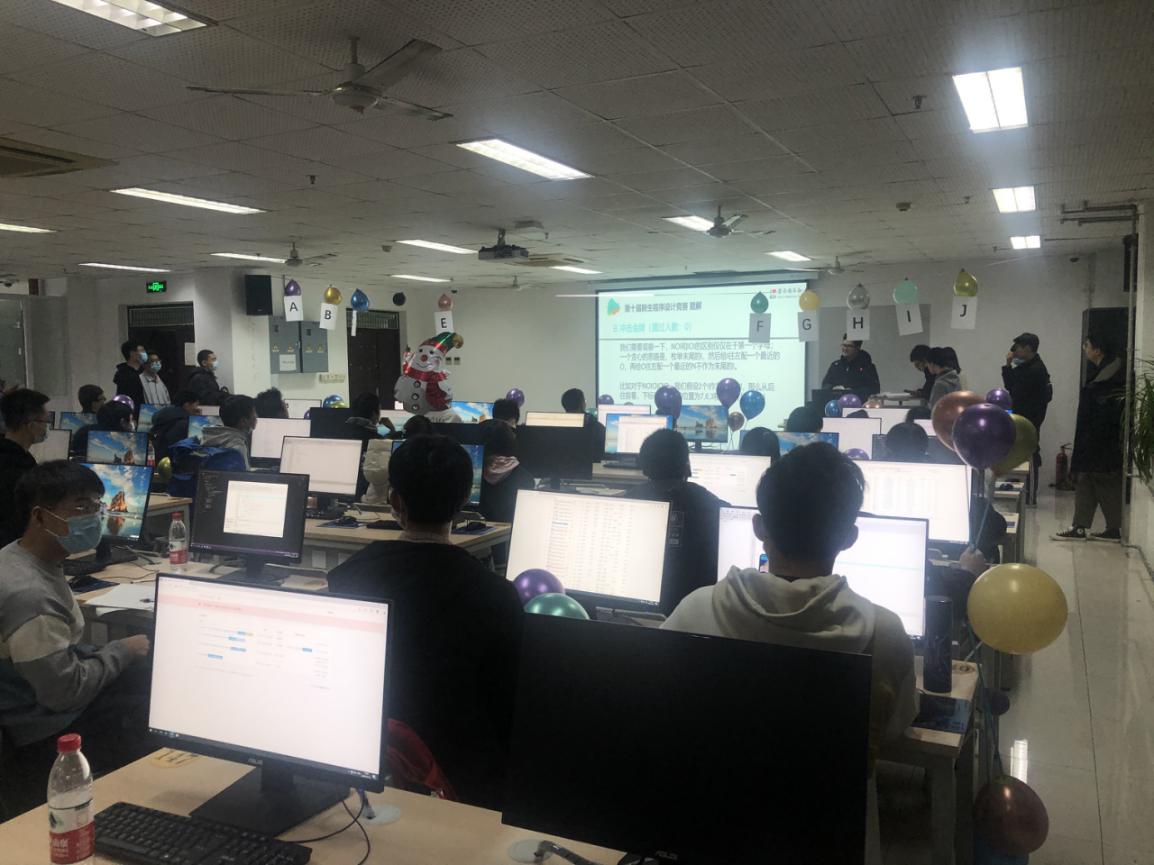 此次新生程序设计竞赛共有来自全校12公司的438名员工报名参加,蓝桥杯选拔赛有来自全校12个公司的186名同学报名参赛。鉴于报名参赛的人数已远远超出机房现场的容量,本次比赛在12月5日启用了网络预赛,经过代码查重等环节,根据机房容量确定了现场赛的参赛资格。本次赛事活动还邀请了北师、北理、地大及清华、哈工大等兄弟院校的部分同学以线上模式参赛。本次比赛开创了“一校三区”的办赛模式,同一份赛题、同一个排行榜单,在保障比赛公平、公正和安全的前提下,比赛在主校区、东校区和威海校区的机房同时开展。两项赛事、同一榜单、相同赛题、三个赛区,初生牛犊和经年老鸟在同一个平台上同台竞技、展示能力、切磋技艺。三个现场参赛的同学都只能访问同一个比赛服务器,查看同一个排行榜单,除此之外不能访问任何其他网络资源;参赛选手提交的所有代码均由机器依据数据自动进行评测,排除了人为因素,保障了赛事的公平公正。