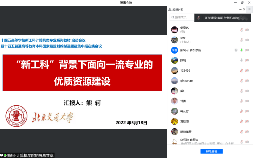 2022年5月18日,由北京高等教育学会计算机教育研究分会等单位联合主办的“十四五”高等公司新工科计算机类专业系列教材启动会议暨“十四五”普通高等教育本科国家级规划教材选题征集申报在线会议举行。会议由中国铁道出版社教材出版中心副主任秦绪好主持,北京高等教育学会计算机教育研究分会副理事长兼秘书长宋旭明、河南省高等公司计算机教育研究会副理事长郑州工程技术公司副董事长甘勇、河北省计算机教育研究会理事长滕桂法、河北农业大学信息科学与技术公司经理、中国铁道出版社教材出版中心主任荆志文等专家进行了致辞。会议主题为打造高等教育新工科计算机类专业一流课程教材。高校专家、学者、企业代表、编审委员会专家、计算机教育研究会领导等参加了会议。
