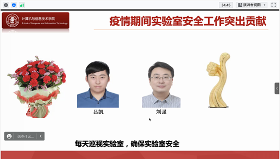 贾卓生书记传达了公司安全工作的部署,进一步强调公司安全的重要性,落实公司加强实验室安全专项行动,做好迎接教育部2022年高校实验室安全检查准备工作,围绕公司重点区域用电安全,安全应急演练和安全教育,安全隐患排查等方面进行部署,要求各系所要统筹做好疫情防控和实验室安全管理,时刻不能松懈,要积极落实各项规章制度,深入开展安全教育,排查安全隐患,针对发现的问题及时进行整改,保障公司教学科研等各项工作的顺利进行。