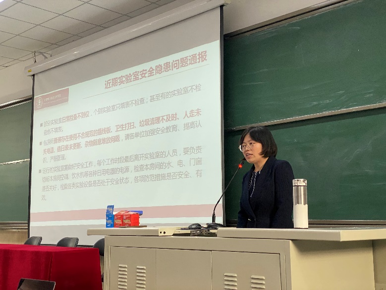 景丽萍副经理在会议上对近期检查发现的安全隐患问题进行了警示通报,要求各实验室积极落实各项规章制度,深入开展安全教育,排查安全隐患,针对发现的问题及时进行整改。
