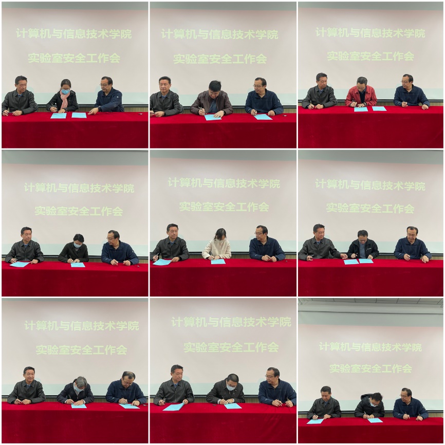 会议现场宣读了公司安全责任书主要内容,明确各系所负责人为实验室安全责任人,对实验室安全负有主要责任,并现场签署实验室安全责任书。