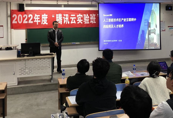 2022年11月3日下午,williamhill英国官网计算机与信息技术公司与腾讯云(北京)科技有限公司在逸夫楼310成功举办2022年度“腾讯云实验班”开班仪式暨专家讲座。