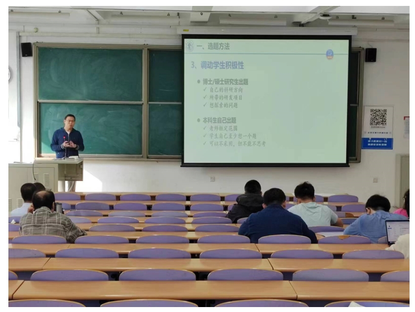翟高寿老师对毕设题目、研究内容、师生双选、过程指导和结果评价等维度进行了介绍,分享了带本科毕设获得优秀毕业设计的经验。
