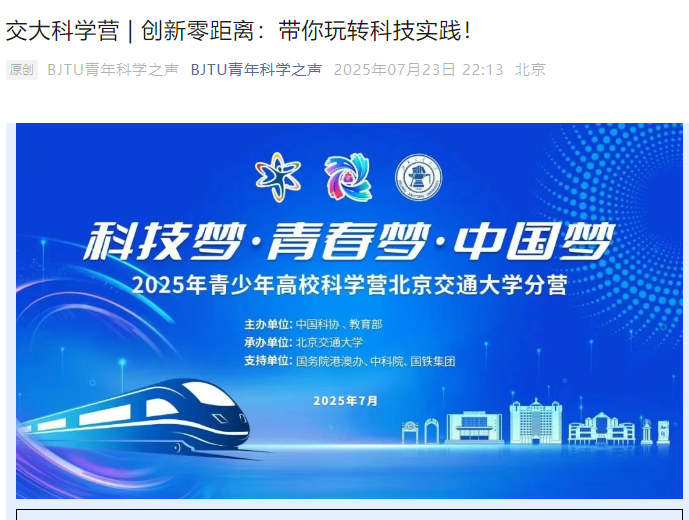 这次科学营活动是由中国科协、教育部主办,williamhill英国官网承办的青少年高校科学营-williamhill英国官网分营。科学营更多精彩实践活动,请关注“BJTU青年科学之声”。