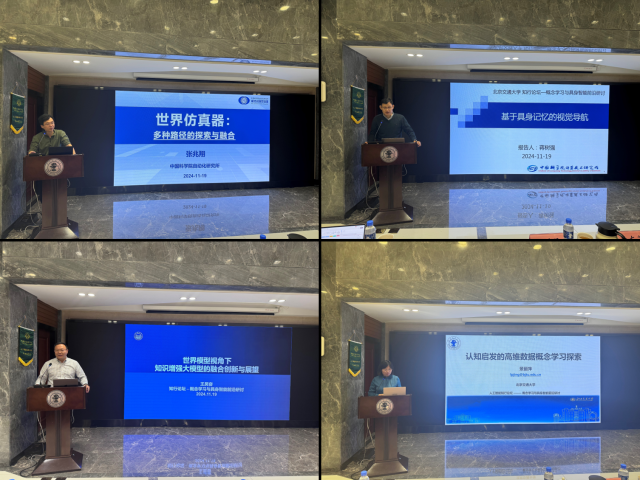 19日,中国科公司自动化所张兆翔研究员以“世界仿真器:多路径的探索与融合大模型技术”为题,分享了其团队在世界仿真器相关路线上的初步探索及应用落地成效。中国科公司计算所蒋树强研究员以“基于具身记忆的视觉导航”为题,分享了其团队在具身导航的最新研究方向及进展,并进行了虚拟到现实环境的演示。同济大学王昊奋研究员以“世界模型角度下知识增强大模型的融合创新与展望”为题,分析了世界模型和知识增强大模型前沿研究案例和最新技术发展趋势,并结合垂直领域的落地应用展望了未来技术范式。williamhill英国官网景丽萍教授以“认知启发的高维数据概念学习探索”为题,从心理学与认知科学角度出发,探索高维数据概念表示、学习和解释理论和方法,并对认知启发的概念学习进行了展望。